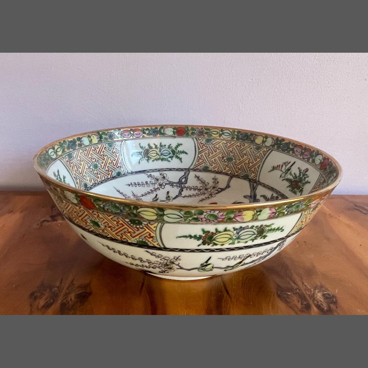 A Chinese Famille-Vert hand painted porcelain bowl (26cm D x 10cm H)