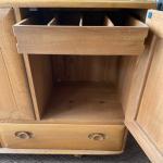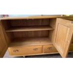 An ERCOL sideboard in light wood finish, two cupboards and two drawers, ERCOL label to the inside - dimensions length 130cm x 43cm depth x height 77cm approx