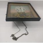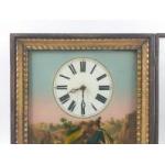 Bavarian hand painted faced antique wall clock c1870's with beautiful old brass weights dimensions of clock frame 14" x 15" depicting a hand painted traditional hunting scene