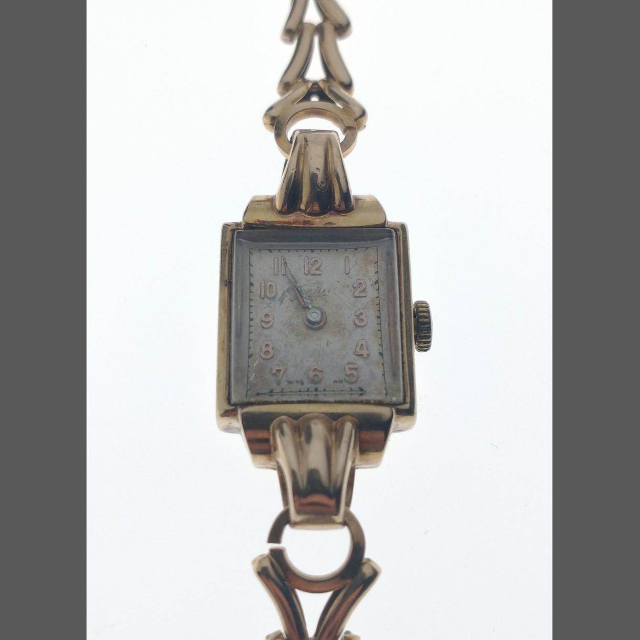 A NICE vintage 375 case and bracelet stamped ladies yellow gold watch, the case hallmark is 1948, the bracelet Hallmark is indistinct either 1911 or 1931? weight approx 14.60g - all within a HAMILTON and INCHES jeweller's case