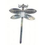 VINTAGE 'White Metal' unmarked but FABULOUS QUALITY Dragonfly brooch with blue stone centred - 7cm length approx weight gross 8.45g