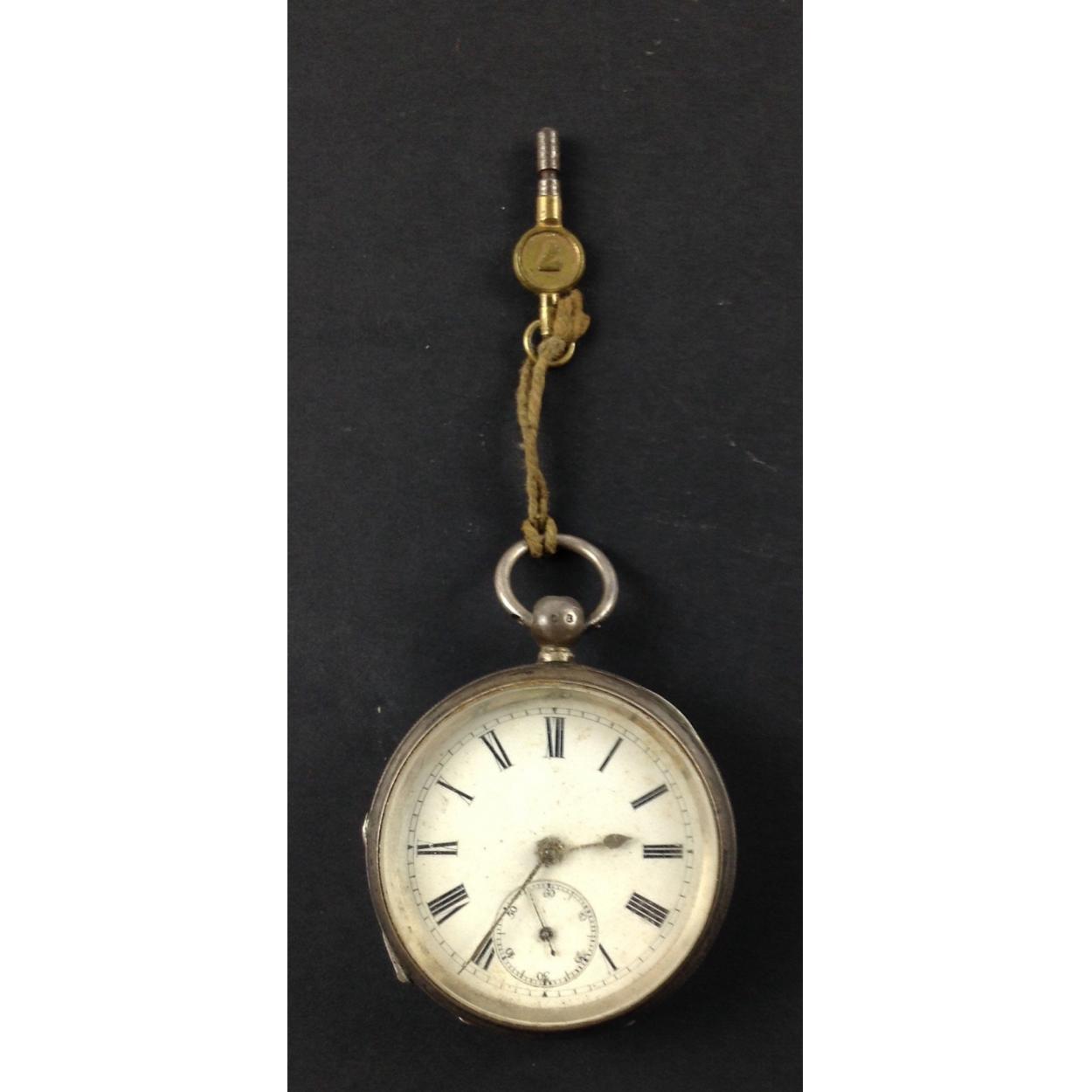 A silver POCKET WATCH hallmarked Birmingham 1897, inscribed to James Veitch, face measures 4cm approx, gross weight 133g with its key