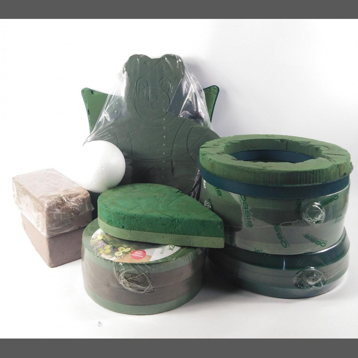 A box full of FLORISTS' OASES to include 5 x12" wreaths, 2 x 10" wreaths, 2 rectangular blocks, 1 ball shape etc