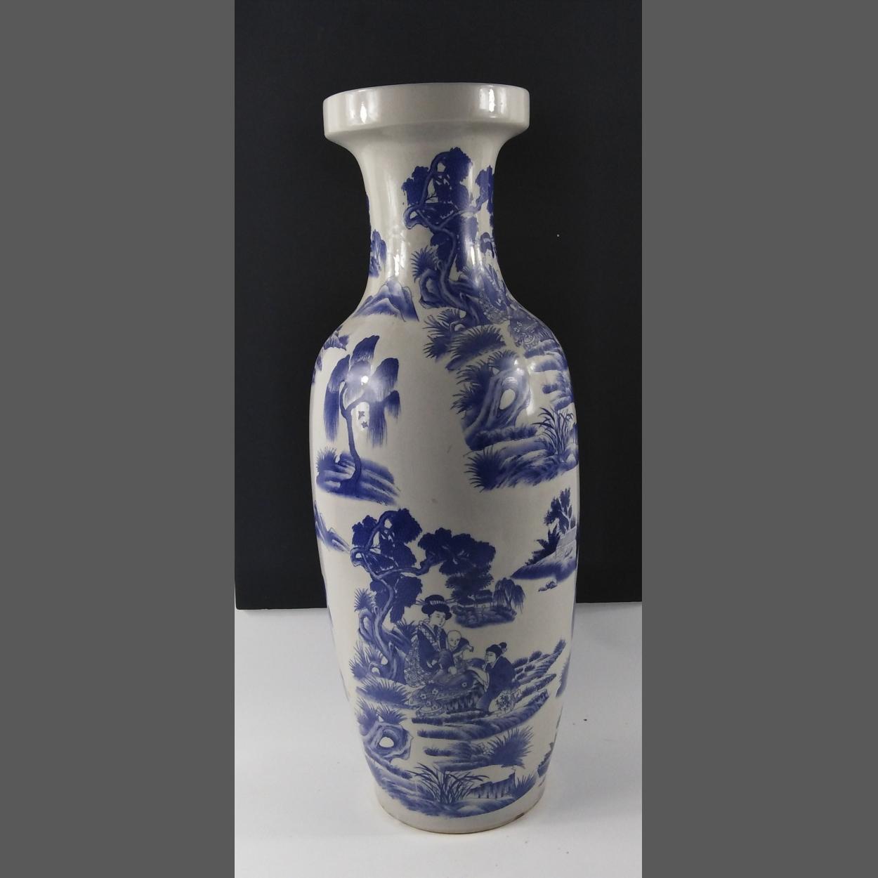 A large, 60cm tall approx, blue and white ORIENTAL VASE