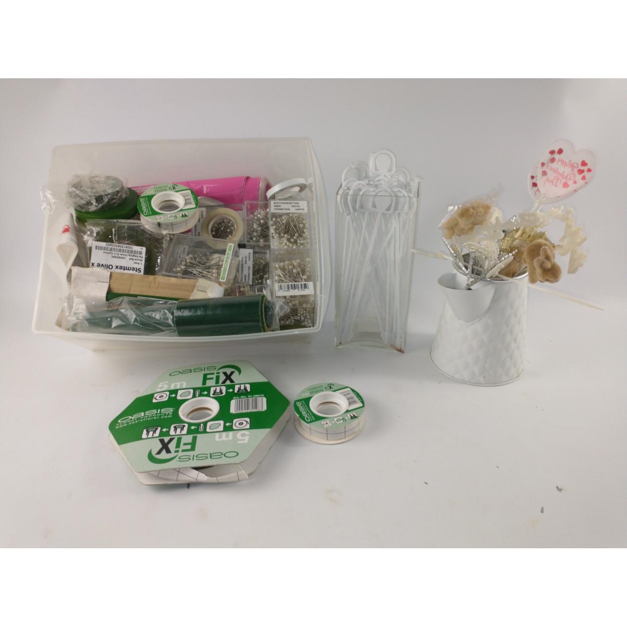 A lot of florists' fixings to include boutonniere pins, label sticks, etc