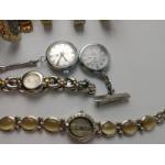 A collection of ladies watches to include Gucci (3228), Continental, Accurist (SR521SW), van Loren, Ackro de Luxe, Brocot 1826, Swatch, Paul Jardin and 2 nurses' fob watches