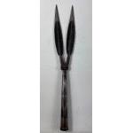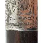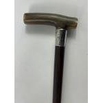 Two WALKING STICKS, both with silver collars hallmarked Chester, both 89cm long, the first dates to 1895, the second to 1892 , plus a lightweight stick with pyrography decoration memorialising theatres of war from the Great War and a throwing spear 123cm long with a wooden shaft accompanied by a twin-pronged head