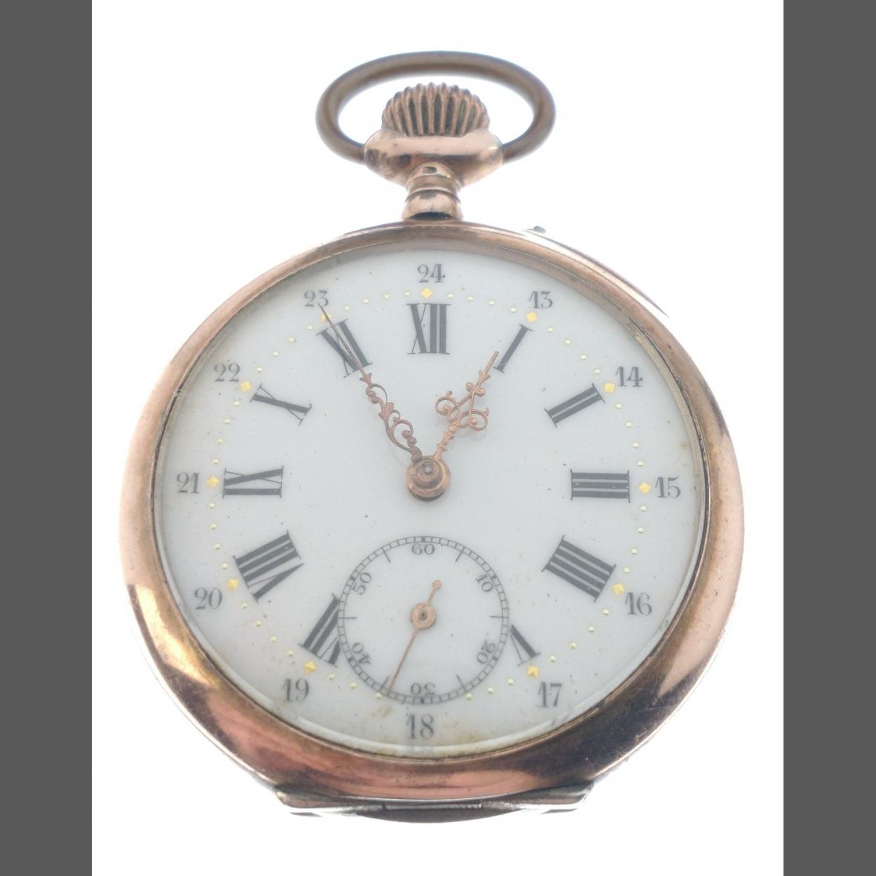 A vintage attractive yellow metal pocket watch , face measures 5cm across. May need cleaning.