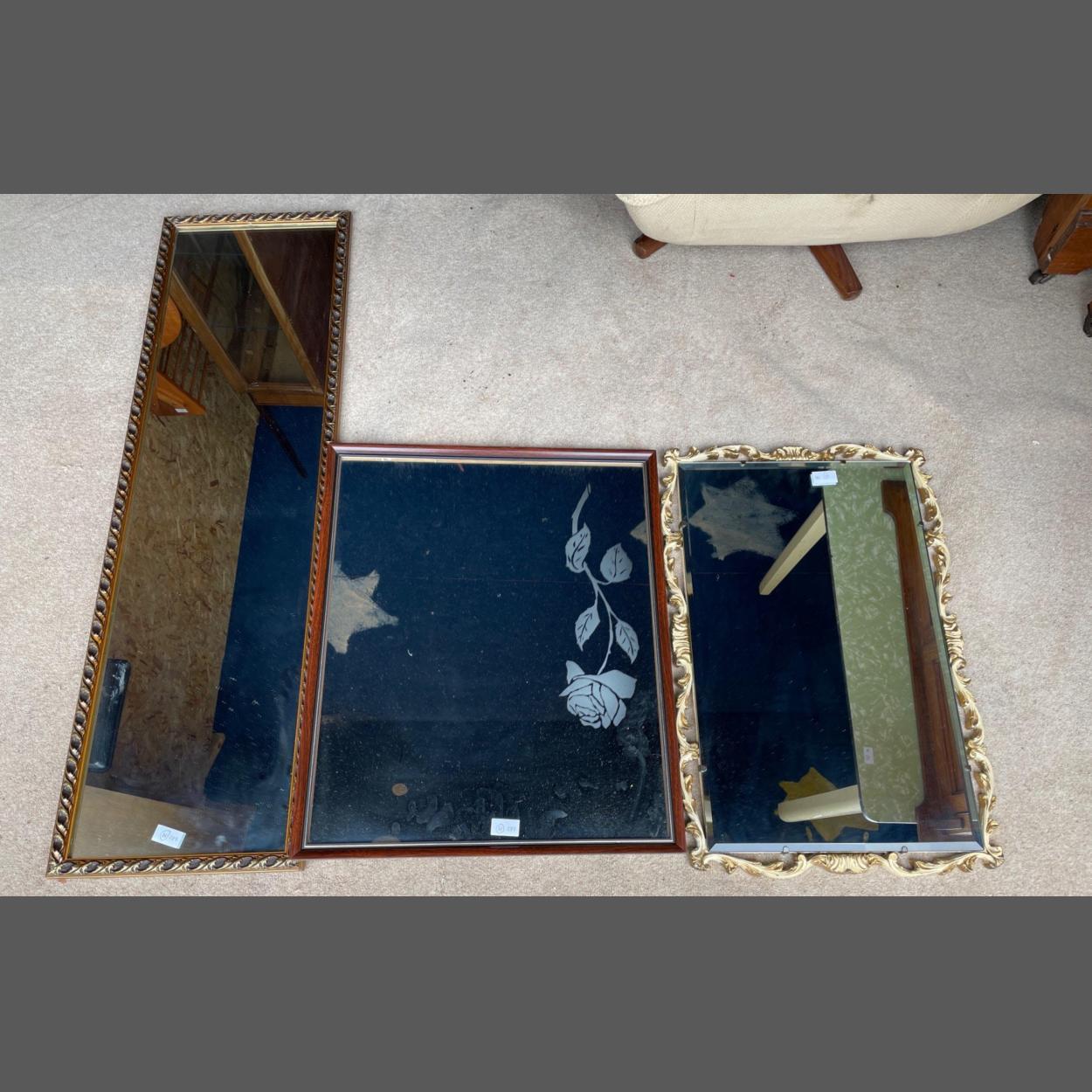 A group of three wall mirrors tallest mirror 127cm x 35cm wide