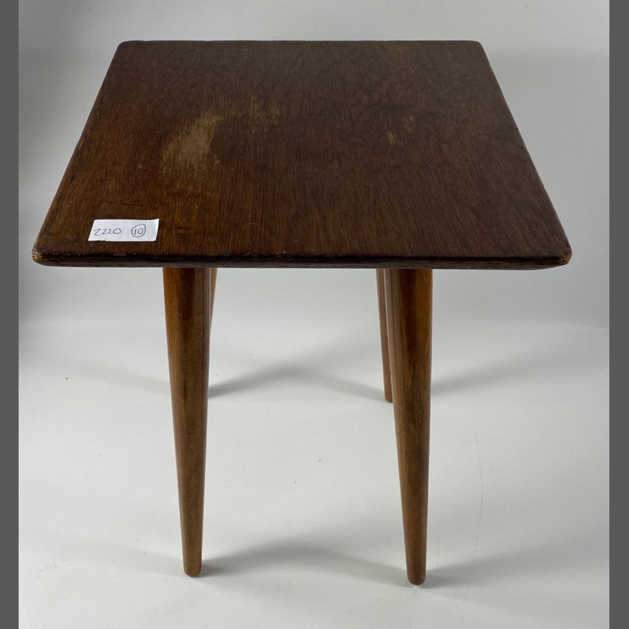 An IN VOGUE small square table on spindle legs height 18” x 12” square top approx