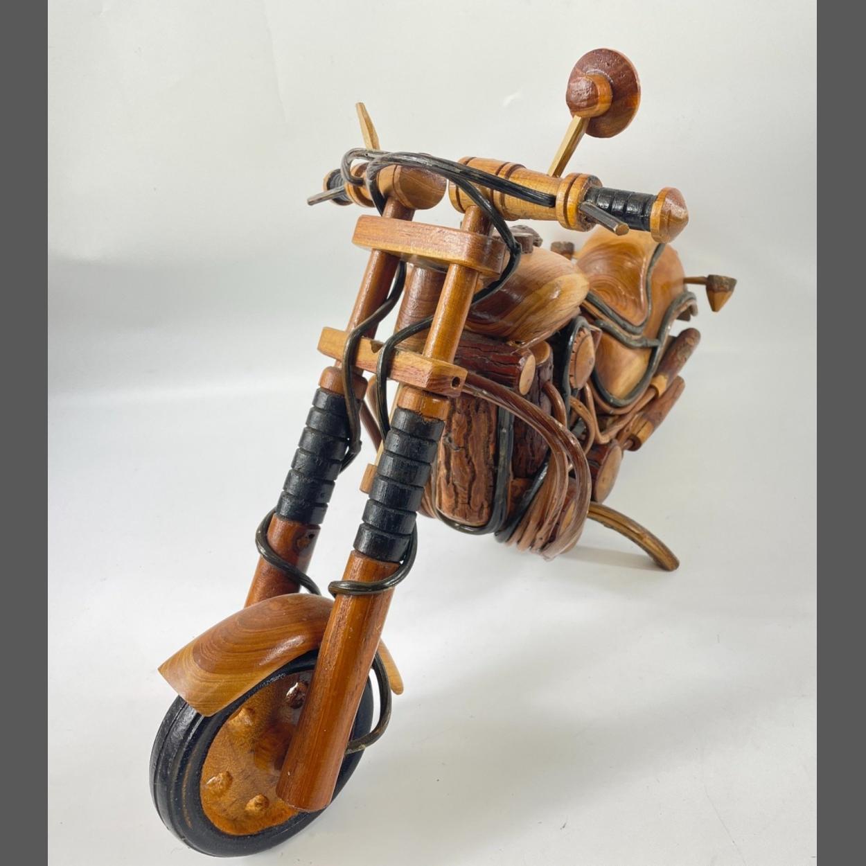 Toys for boys - a large wooden model of a motorbike plus a much smaller New Ray model of a Kawasaki ZX-12R bike in a perspex case