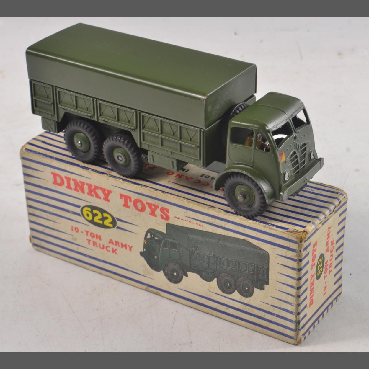 DINKY toy One model 622 10-ton army truck. No visible damage to vehicle. Some signs of wear on the box, which is original