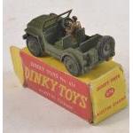 DINKY toys AUSTIN CHAMP JEEP model 674 with one figure. Some slight damage to paintwork. Comes with original box which is missing one end flap.