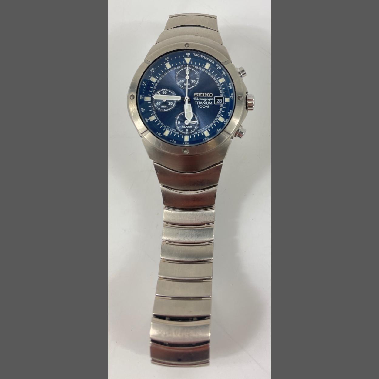 A SEIKO gent's chronograph titanium100m watch (in need of battery)