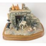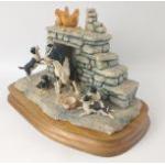 Border Fine Arts 1985 'Jock's Pride' collie dog with pups signed by AYRES, from the James Herriot collection stands approx 15cm high (small chip missing from one chicken and one puppies ear)