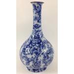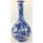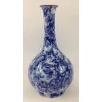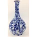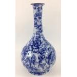 A pair of vintage Cavendish LOSOL WARE bulbous vases in blue and white standing 26cm tall, damage repaired to the rim of one