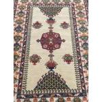 A VINTAGE HANDMADE TRADITIONAL INDIAN CARPET with a creamy coloured background with urns of floral display pattern - QUITE UNUSUAL! Dimension 6.5ft x4.5ft