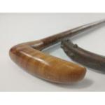 A quality vintage hardwood riding crop 89cm length and a small very old walking stick with ‘metal nodules’ grip on the handle..