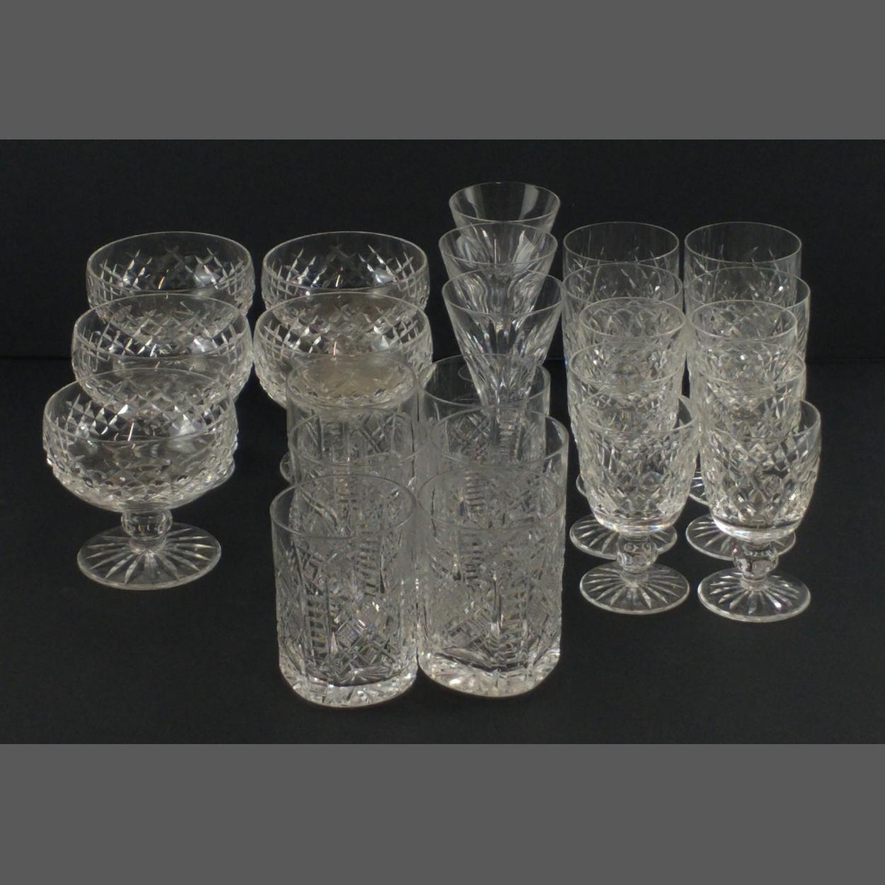 Quality - crystal to include 6 WATERFORD sundae dishes, 3 large WATERFORD sherry glasses, 4 whisky tumblers, 6 whisky tumblers, 6 large liqueur glasses