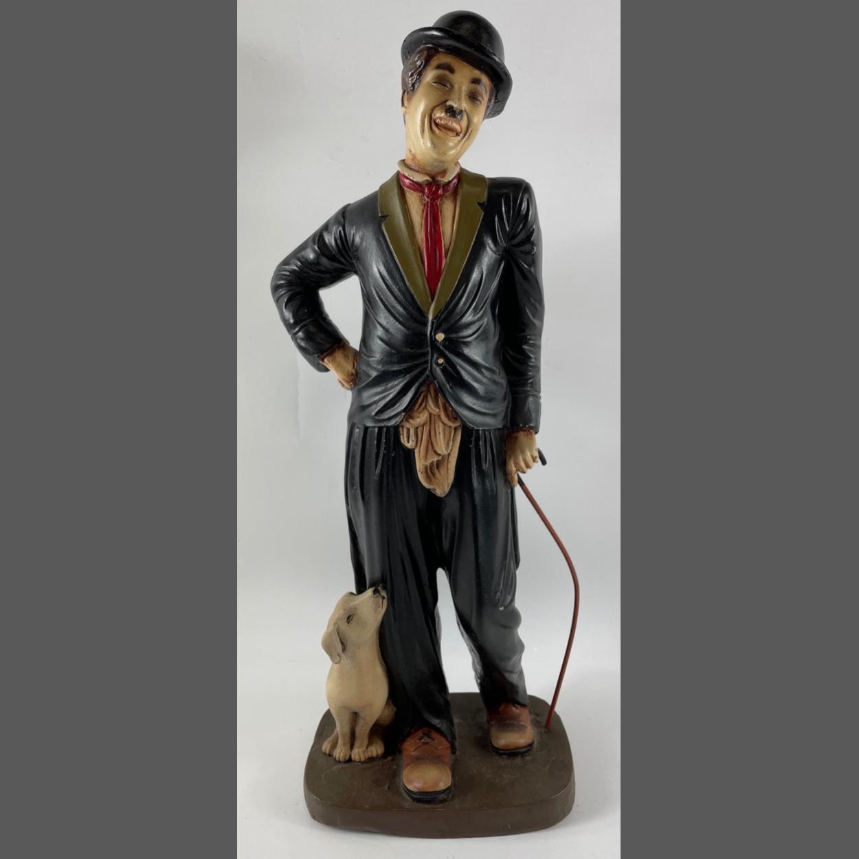 Hard to find CHARLIE CHAPLIN walking on the street with his dog Fig statue standing 53cm high, retains his walking stick