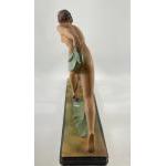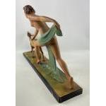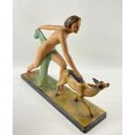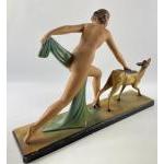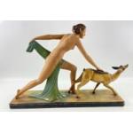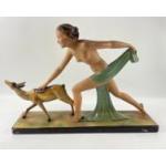 A striking ART DECO style figural group of Diana the Huntress and a faun 58 x 40cm high