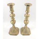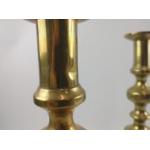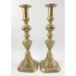 Two antique brass early Victorian pair of candlesticks - height 30cm