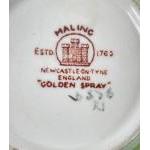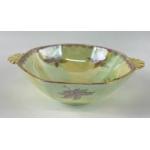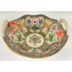 A ceramic flatback mantle dog with hand painted eyes and face 30cm tall x 26cm wide(at base), no chips or cracks noted, also a MALING 'Golden Spray ' pattern dish with twin handles and lastly an ANTIQUE hand painted floral pattern NORITAKE twin handled bowl dimensions 18cm diameter