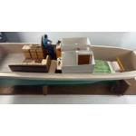 Large Cabin Cruiser is based on a remote control Norfolk Broads Cruiser, complete with bedroom and kitchen, and powered by an electric motor, and is radio controlled (no radio control included) This took around 9 months to complete and hasn't completed any pond trials. This boat comes complete with a removable stand - dimensions width 13" and length 47" approx