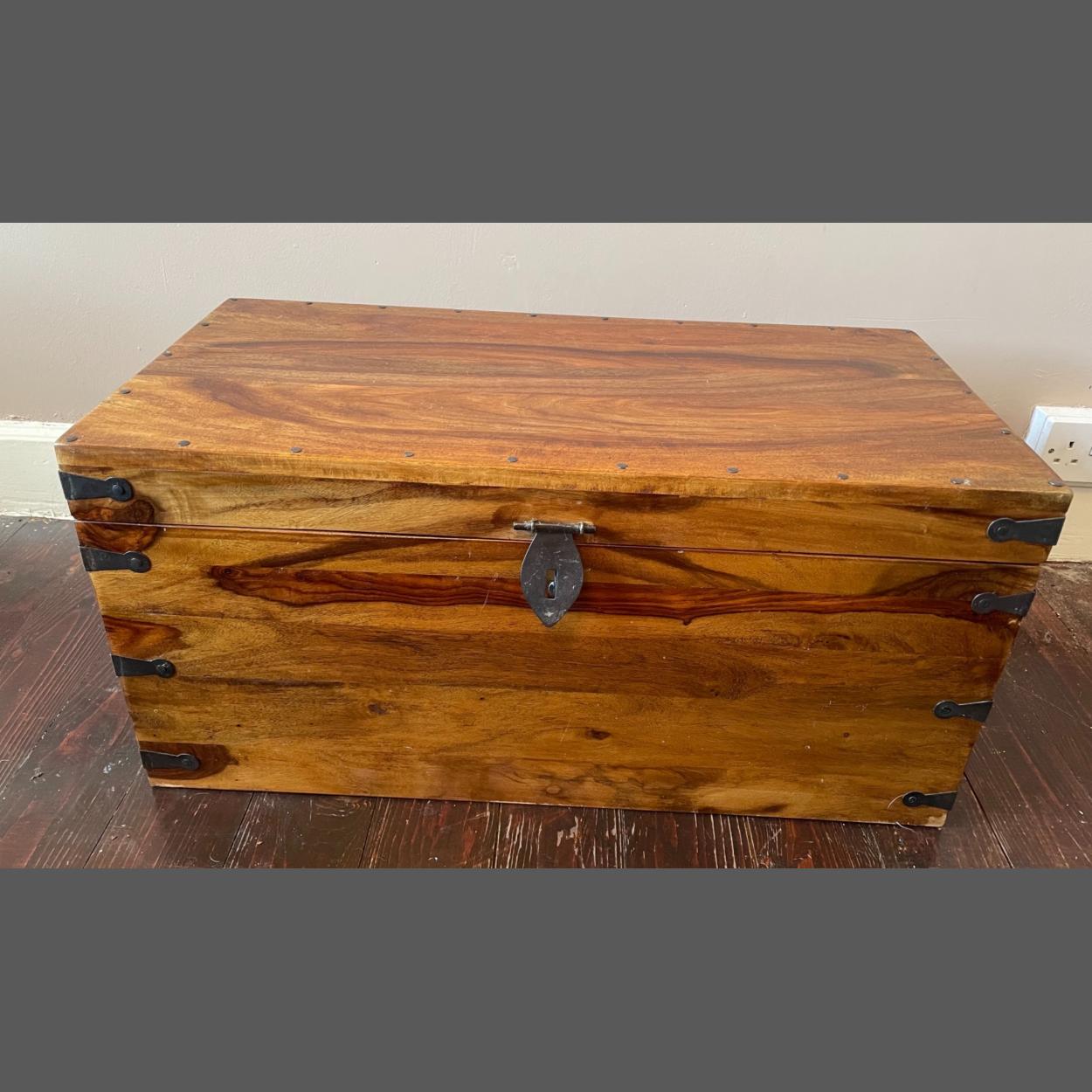 A modern HARDWOOD teak style storage box as new condition- dimensions 3ft x 18” approx