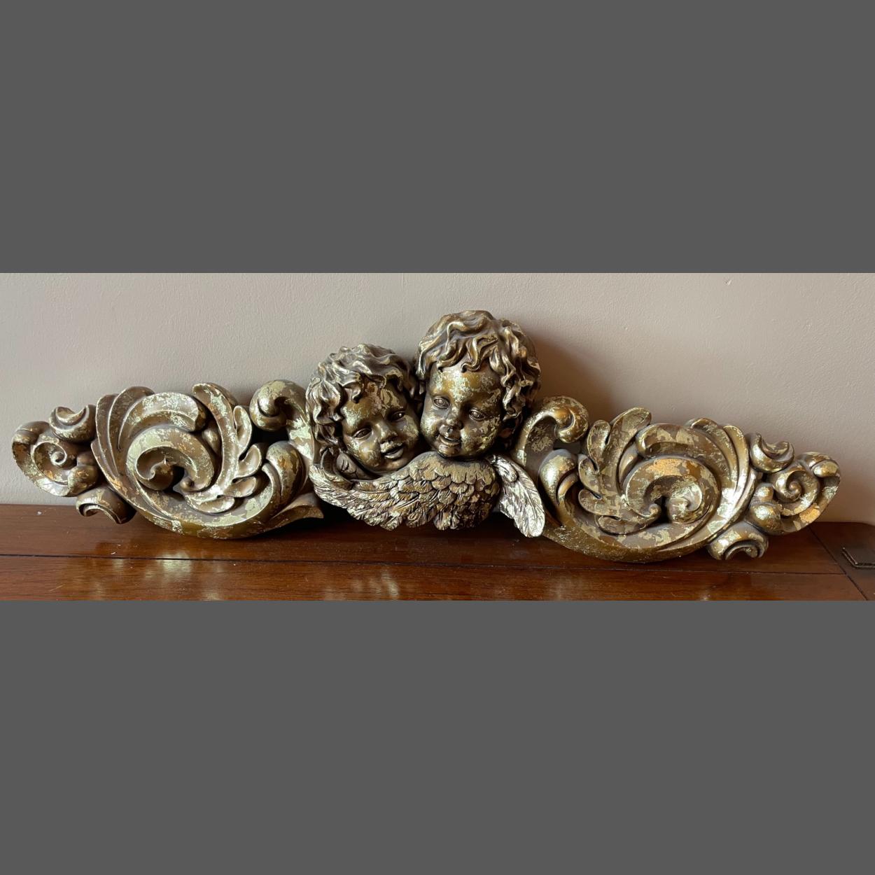A gilded CHERUB decorated wall piece length 78cm x 20cm
