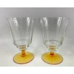 Six FABULOUS vintage bell-shaped wine glasses with floral engraving and gold-coloured bases standing 13cm high (one with small chip to lip), plus 3 sherry glasses in the same design