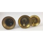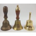 Collection of brass to include 3 bells and photo frame (overall height: 23cm, fits photograph approx 15cm tall)