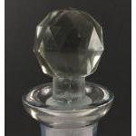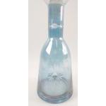 A nice QUALITY blue glass small decanter with crystal orb stopper 23cm tall x base diameter 8cm approx with four delicate blue small wine glasses 19.5cm tall approx