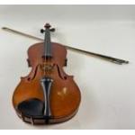 Vintage - a full 4/4 size 1908 VIOLIN from the workshop of TOP VIOLIN MAKER FRANCOIS BARBE in a vintage wooden carry case with strung bow. Violin is missing one string and has signs of wear commensurate with its age