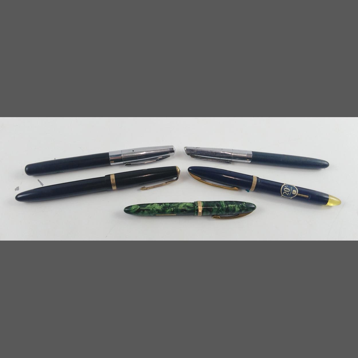 Five VINTAGE assorted fountain pens, three with 14K nibs