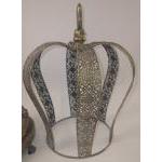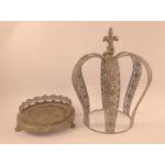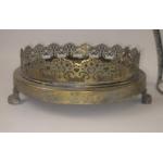 A large pierced metal crown candle holder with base on raised paw feet - 34cm tall x 23cm diameter approx
