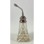 A cut-glass scent atomiser with a sterling silver top and sprayer 9x 4.5cm