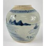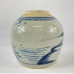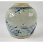 An early blue Chinese ginger jar minus its lid, standing approx 17cm tall