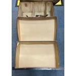 Two vintage suitcases, the first 67x37x26cm with 2 internal divisions and a ZIM ISRAEL NAVIGATION Co. label on it, the second is an expanding brown suitcase measuring 66x42x20cm