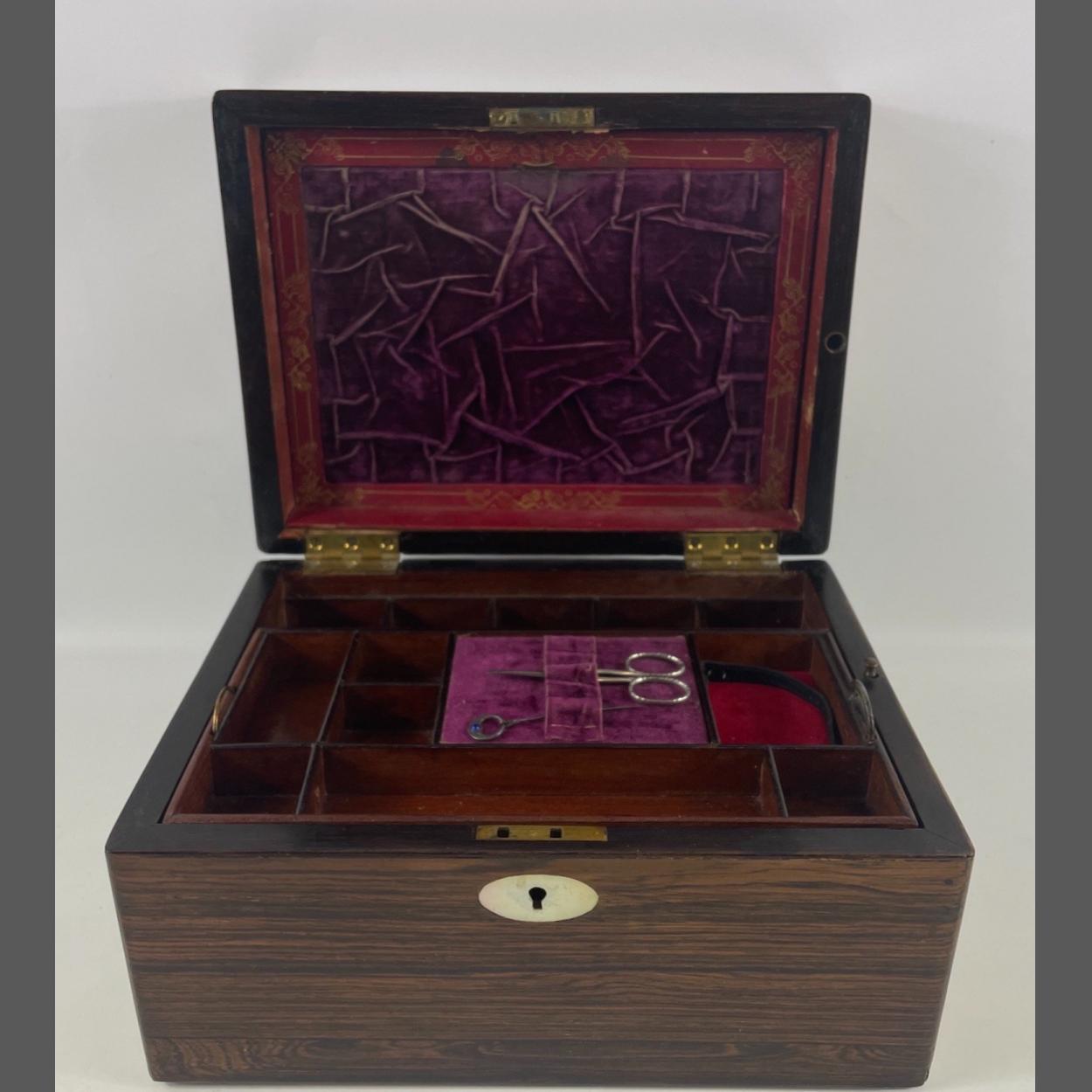 NICE QUALITY! A large wooden writing/jewellery/sewing box 30x23x18cm with removable shelf and a secret compartment