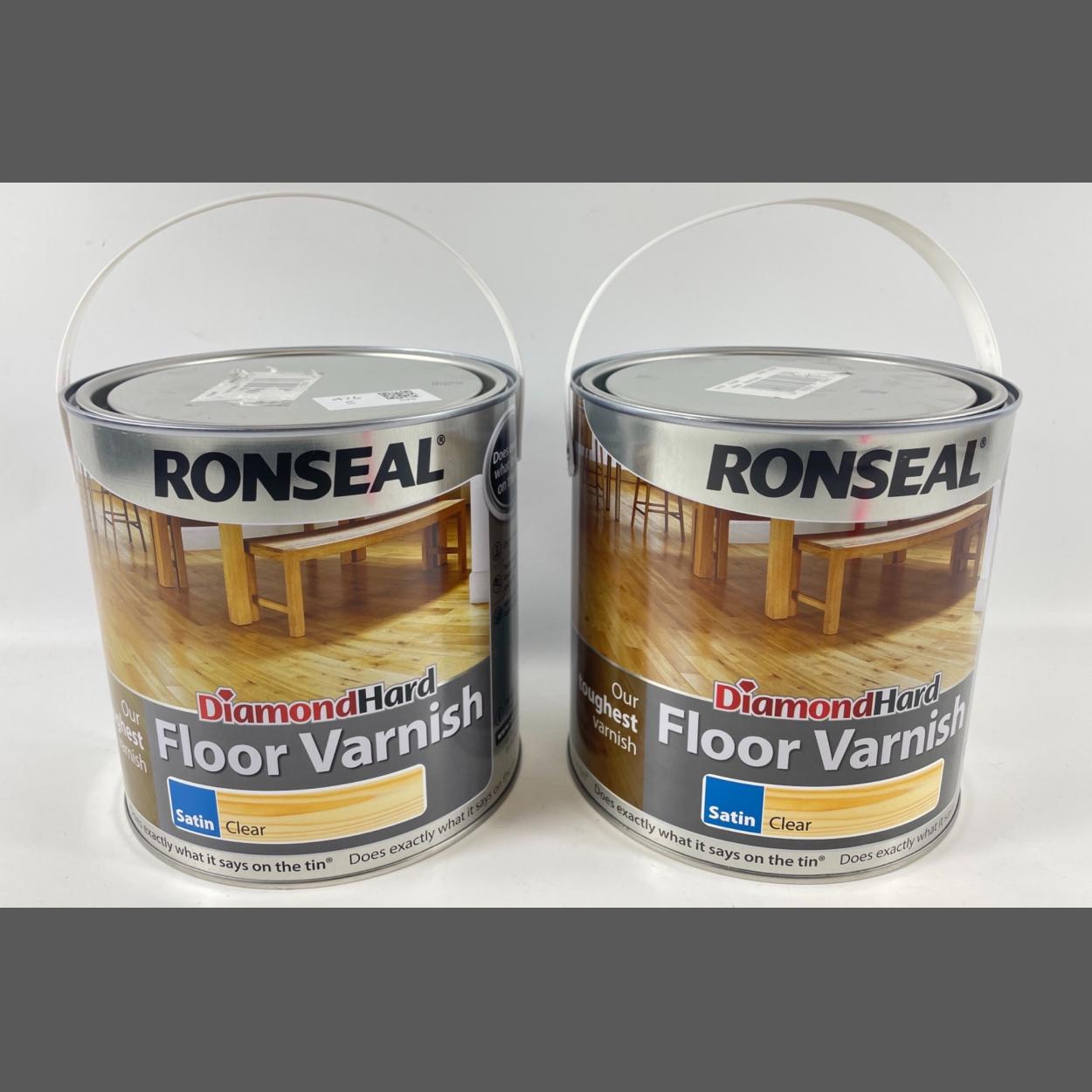 2 x NEW SEALED 2.5L Ronseal Diamond Hard Satin Clear Floor Varnish. Covers approx. 30 sq.m with 3 coats (15 sq.m per can). £80 at B&Q