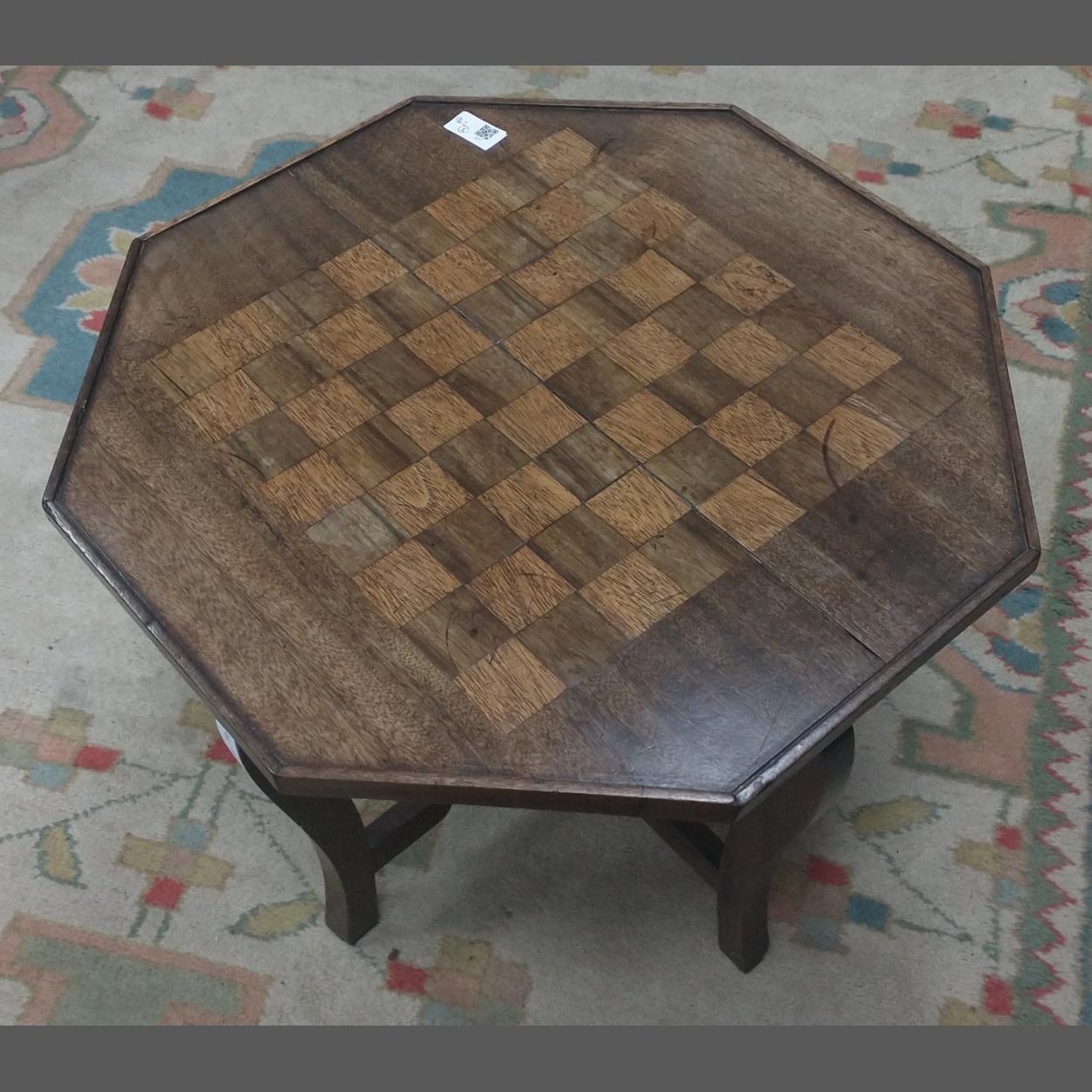 A VINTAGE Octagonal chess topped occasional table 52cm diameter
