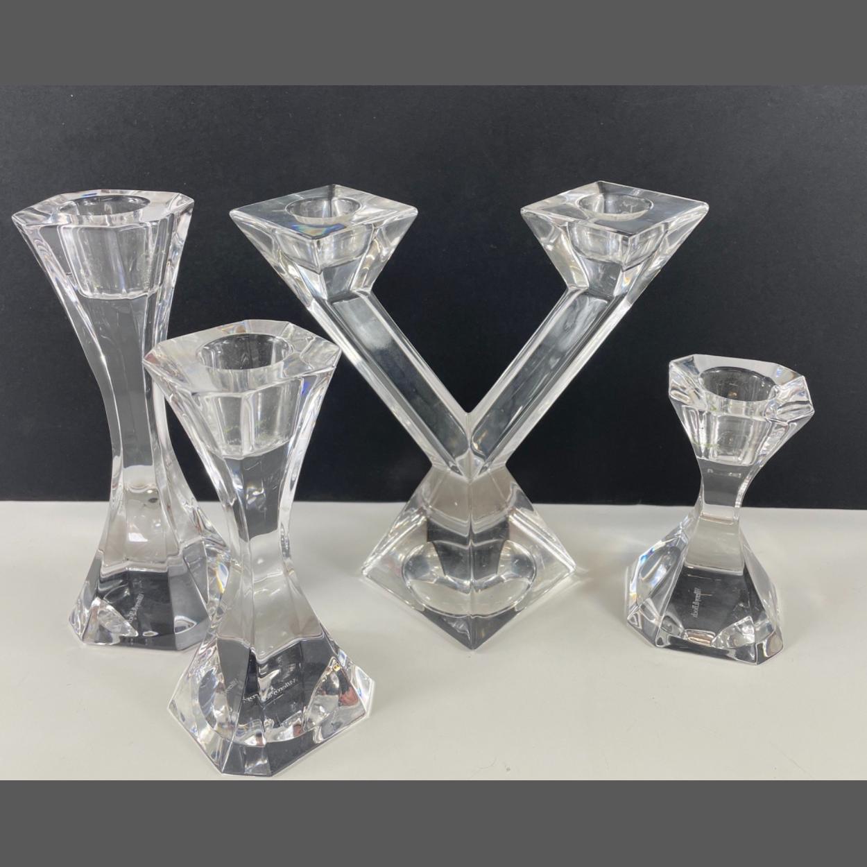 Quality - Three VILLEROY & BOCH candlesticks 10, 13 and 16cm tall plus a twin-armed candelabra (16cm high)