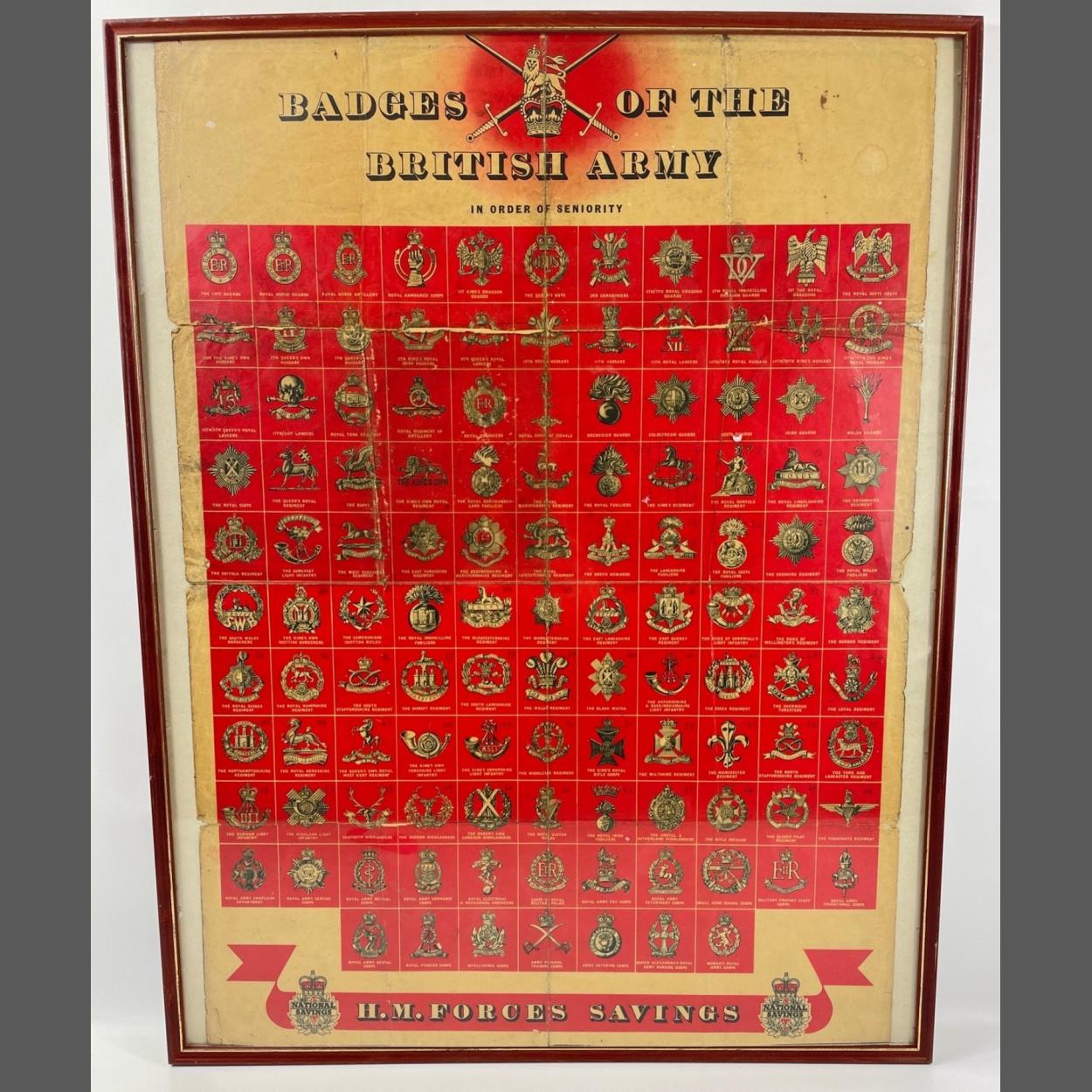 RARE -A Framed poster 'Badges of The British Army' in order of seniorority - frame size 22" x 28"
