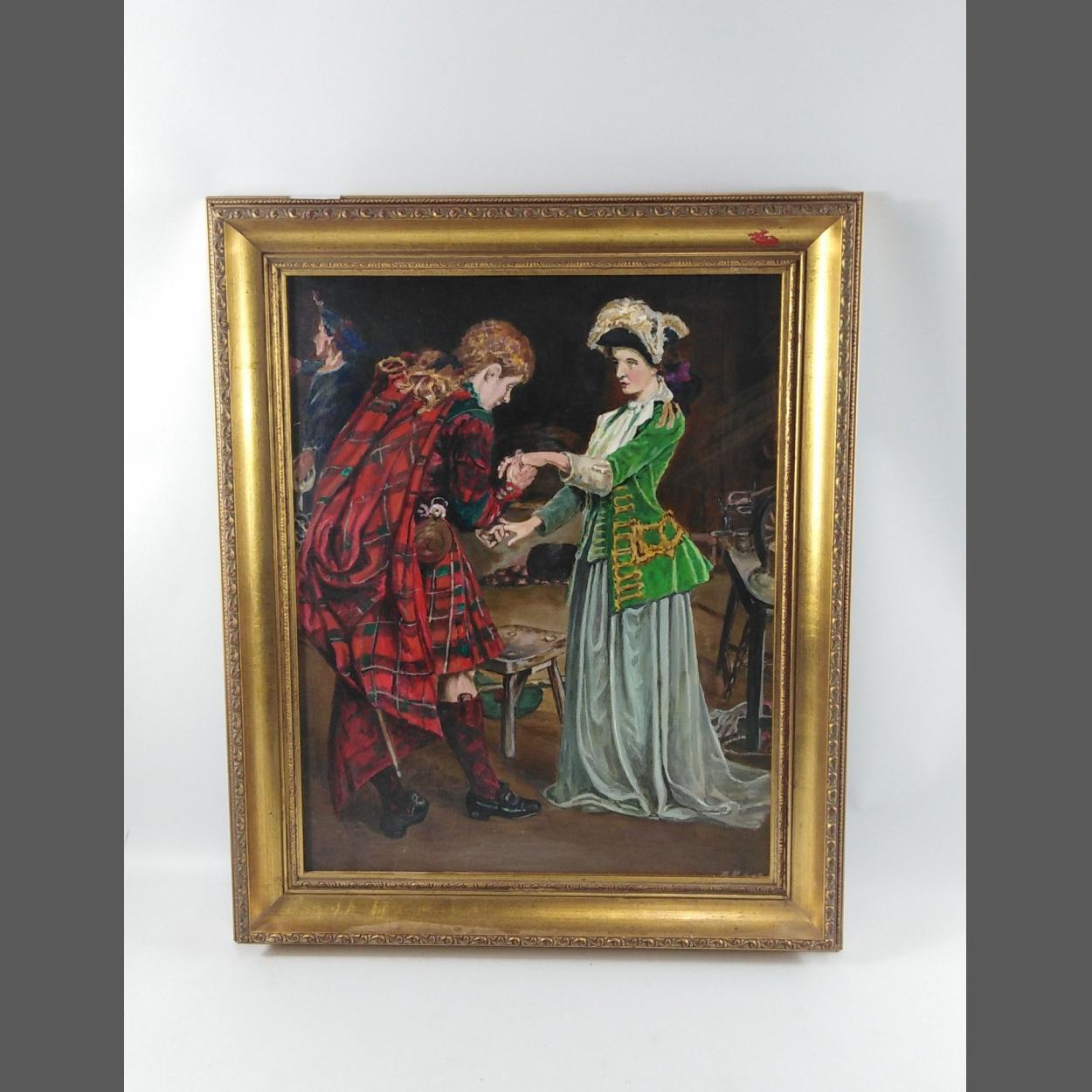 Framed oil on board Bonnie Prince Charlie and Flora MacDonald signed KANE 20" x 23"