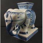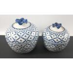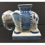 An ORIENTAL lot of blue and white china to include 2 Thai lidded pots 13 and 15cm diameter, a lidded ginger jar signed to base 20cm tall, an attractive elephant flower vase approx 18cm long and 15cm tall
