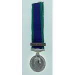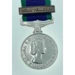 A British Service medal with ribbon for MALAYA complete with its original presentation display case - with also a small copy Malaya Peninsula copy medal with ribbon