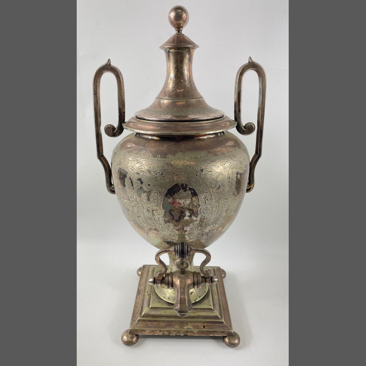 A VINTAGE large, ornate white metal SAMOVAR standing 50cm tall