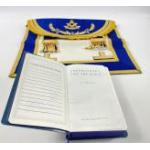 FREEMASONARY AND THE BIBLE by HL Haywood Masonic Edition, still in original presentation box with lid, as in new condition with gilded MASONIC symbol on front cover, with also a Scottish Thistle Emblem MASONIC APRON by TOYE KENNING and SPENCER, all within its original presentation case with the initials H.A. stamped on the outside lid.