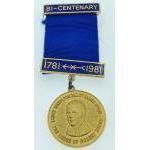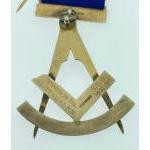A collection of MASONIC items to include white metal Masonic Emblem cufflinks and a masonic button pin, also a Bi-Centenary Robert Burns medal and ribbon, and a second Bi-Centenary medal 1790-1990 Lodge No 177 Old Monklands St James complete with red ribbon, both within a Toye Kenning and Spencer plastic pouch - also a Lodge St Andrew No 544 Birmingham Hallmark silver gilt medallion with traditional masonic symbol, with royal blue ribbon with a nice yellow stone inset with inscription 'PRESENTED TO BROTHER HENRY ALLAN PM RMW 1981-82